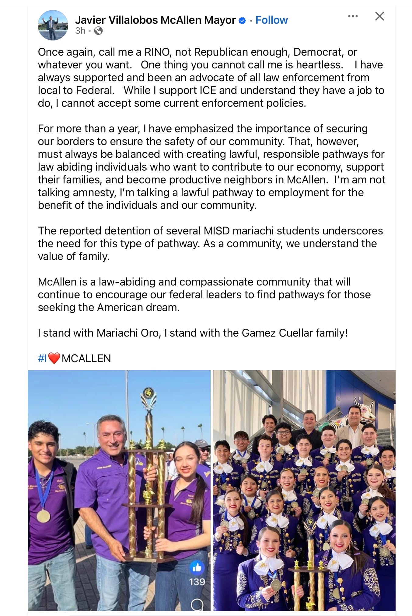 Luis Antonio Gámez, Emma Guadalupe Cuéllar, and their three sons came to the United States in May 2023, through a Biden-era app known as CBP One. They were reportedly fleeing cartel violence in Mexico, and they settled into McAllen, Texas. Antonio and his brother Caleb, 14, were members of the award-winning McAllen High School mariachi band. They were invited by Rep. Monica de la Cruz to the U.S. Capitol after they won their latest state championship last year.