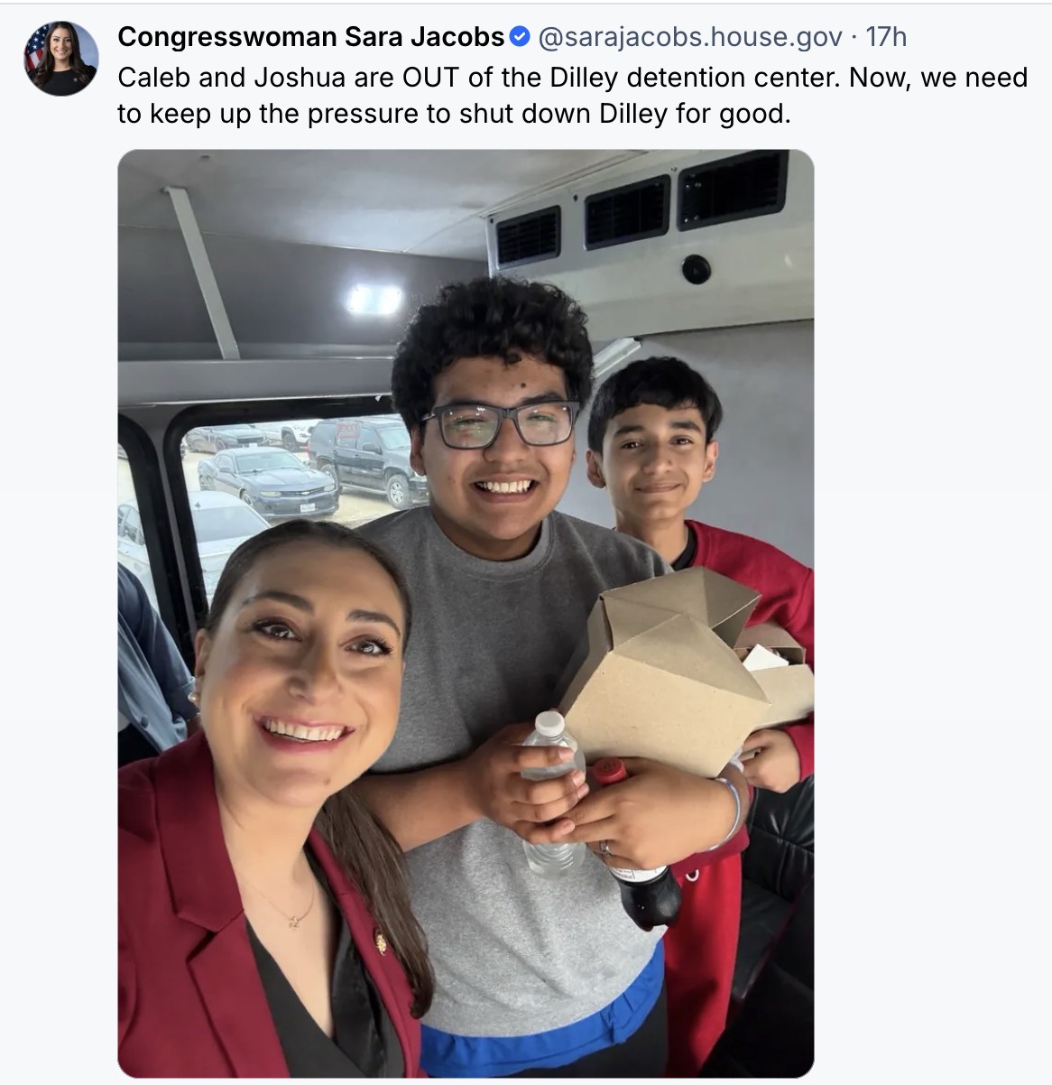 On Monday, her office released another statement saying that she “secured release” of Antonio at El Valle Detention Center. However, in a video recorded after seeing the other four members of the Gámez-Cuéllar family at Dilley, Rep. Nanette Barragan said she asked if de la Cruz had been working to secure their release. The family did not, according to Barragan.